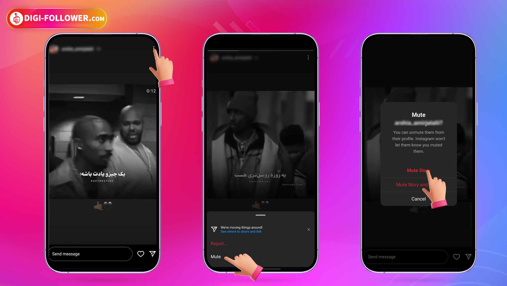 اگر Mute Story را بزنید، فقط استوری های آن شخص میوت خواهد شد (دیگر در بخش استوری ها نشان داده نمیشود)